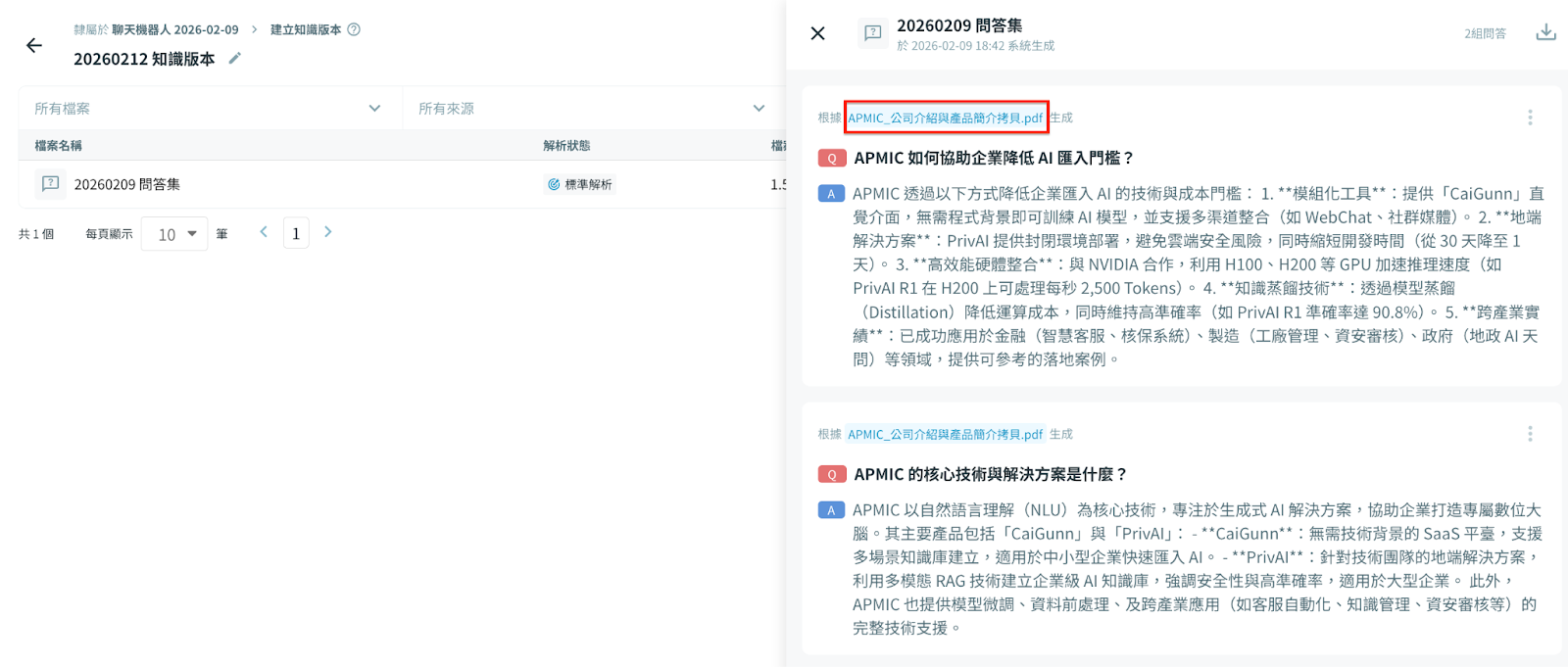 使用者在生成的問答集中,可以點擊檢視該問答對應的來源檔案。