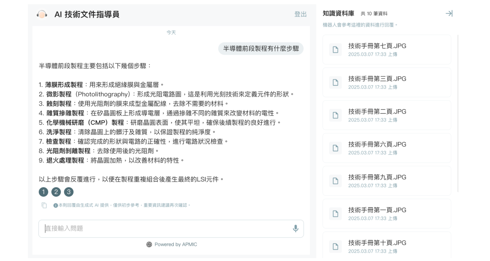 技術人員可透過簡單輸入問題,AI 即時提供維修建議。